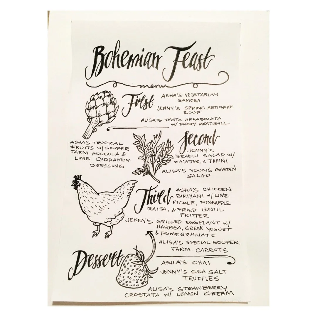 I illustrated this menu for an outdoor Bohemian Feast in Atlanta