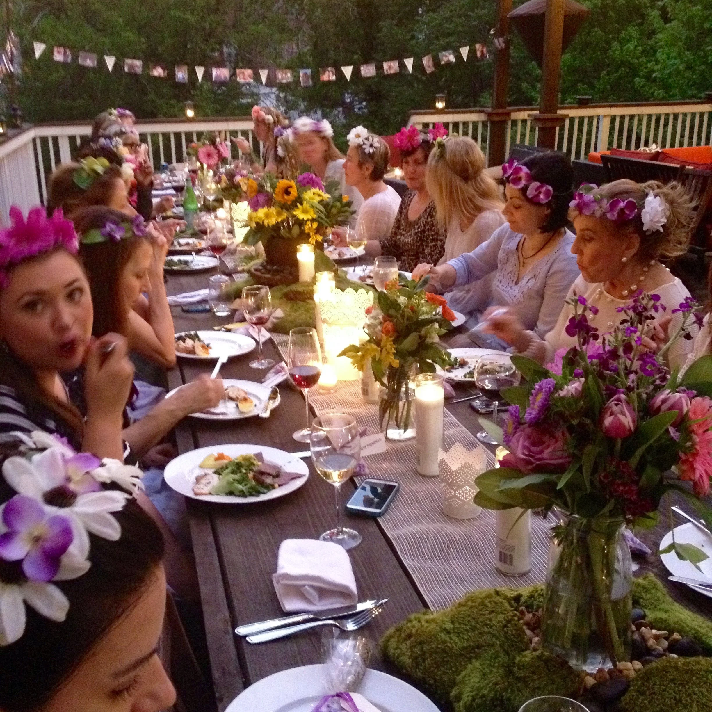 Nothing says a 50th birthday celebration like a giant table of all of your closest female friends. Loved hand making custom floral crowns for each guest to wear at the table